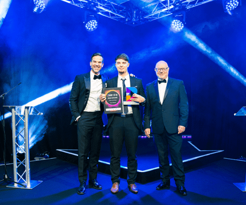 First on stage after the band was Alex Pollard, senior contracts manager at RMC Digital Print, as he was named Rising Star. He joined the large-format operator on a business administration apprenticeship. Now 23, he is senior contracts manager at the Hull firm, following a run of promotions.